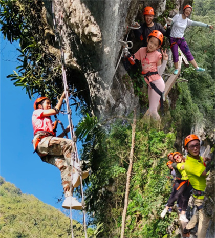 在西雙版納勐遠(yuǎn)仙境,有一處中國(guó)乃至世界唯一的熱帶雨林飛拉達(dá)(攀巖)。雨林飛拉達(dá)(攀巖)總長(zhǎng)350米,最高點(diǎn)距離地面