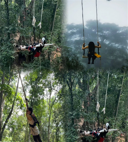 在這里,你可以體驗到山野秋千的樂趣,感受風在耳邊呼嘯而過的刺激挑戰(zhàn)20米高空秋千,