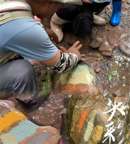 彩石畫臉不僅增添雨林穿越的趣味性,也更加融入這片神秘的自然之中,更加深入地感受到了雨林的魅力和神秘。
