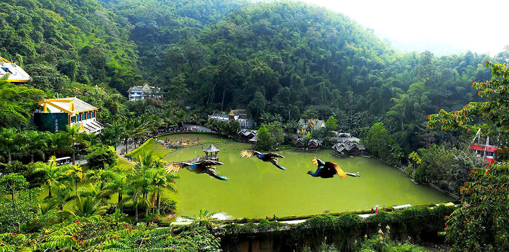 野象谷位于景洪以北的勐養(yǎng)自然保護(hù)區(qū)內(nèi)的三岔河河谷內(nèi),距景洪47公里,總面積約370公頃,建筑面積2800多平方米,水域面積8000平方米,為低山淺丘寬谷地貌,海拔747米至1055米。園內(nèi)有動(dòng)物觀賞區(qū),原始森林探險(xiǎn)旅游區(qū)和接待中心等。區(qū)內(nèi)溝河縱橫,森林茂密,一片熱帶雨林風(fēng)光,亞洲野象、野牛、綠孔雀、獼猴等保護(hù)動(dòng)物都在此棲息。由于景區(qū)處于勐養(yǎng)自然保護(hù)區(qū)東西兩片區(qū)的結(jié)合部,自然成為各種動(dòng)物的通道。到這里活動(dòng)的野象比較頻繁,成為西雙版納唯一可以觀賞到野象的地方。1990年開始,以此地為中心修建了這座以觀賞野象和游賞熱帶雨林為主要內(nèi)容的森林公園。1996年對(duì)外開放至今,后又建有觀象架走廊、樹上旅館、高空索道、步行游道等設(shè)施以及人工蝴蝶養(yǎng)殖園、網(wǎng)籠百鳥園等,是西雙版納旅游景點(diǎn)的佼佼者。目前,野象谷有我國第一所馴象學(xué)校,游人可觀看大象表演節(jié)目。另外,這里野象大約有50群,300-350只左右。平均4.4天有一群野象出沒、漫步、洗澡、嬉戲。游客還可以通過紅外線夜視鏡在晚上觀察象群的出沒。觀看野象的最佳時(shí)間是傍晚、夜間和清晨。