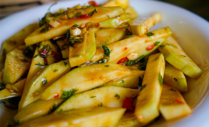 用辣味調(diào)料來涼拌芒果,酸甜可口還伴著芒果清香。喜歡水果喜歡涼拌統(tǒng)統(tǒng)滿足!
