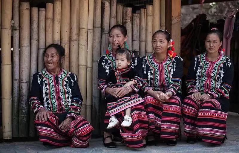 拉祜族是云南特有的民族,拉祜族男子身穿淺色右衽交領(lǐng)長袍和長褲,喜歡佩刀,系腰帶,腳穿布鞋,頭戴包頭,長袍兩側(cè)有較高的開衩,領(lǐng)口衣襟等處用深色布條鑲邊,包頭用白紅黑等各色布條交織纏成。