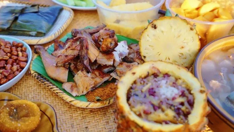 傣族風(fēng)味自成體系,基本的烹飪方法是烤、炸、蒸、剁、腌,味道特點(diǎn)香、脆、酸、辣、鮮。香茅草烤魚、烤雞、香竹烤飯、牛撒撇、烤牛皮、酸筍煮雞、菠蘿紫米飯、黃螞蟻蛋、酸筍煮螺螄、油炸青苔、腌牛筋、喃咪、哈尼族的竹筒燒肉、雞肉稀飯、布朗族的包燒鮮魷、卵石鮮魚湯等上百種傣族美食好吃不貴,讓你的的味蕾簡直停不下來。