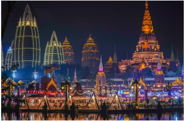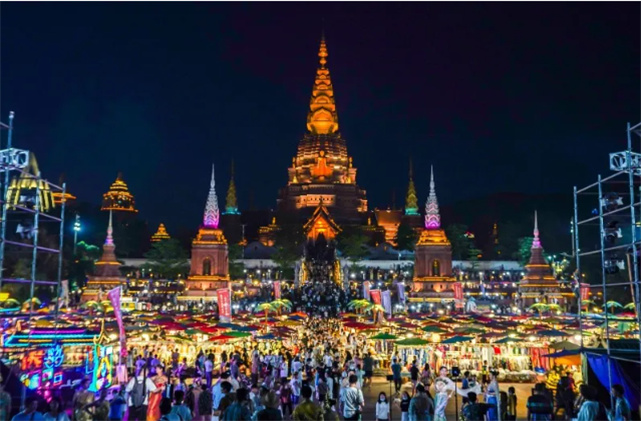 夜晚的告莊西雙景燈火通明,熙來(lái)攘往人氣旺盛。六大國(guó)際中心、五大景觀帶、三大綜合體、東南亞特色綜合業(yè)態(tài)的規(guī)劃布局,讓告莊西雙景這張耀眼的名片走向國(guó)際市場(chǎng)。精心設(shè)計(jì)的“濱江雨林道、百象迎賓道、狂歡娛樂(lè)大道、大金塔集會(huì)廣場(chǎng)、湄公河人家”五大景觀帶,讓游客不跨出國(guó)門就能體驗(yàn)到獨(dú)具風(fēng)情的視覺(jué)享受,感受東南亞各國(guó)的異域風(fēng)情。