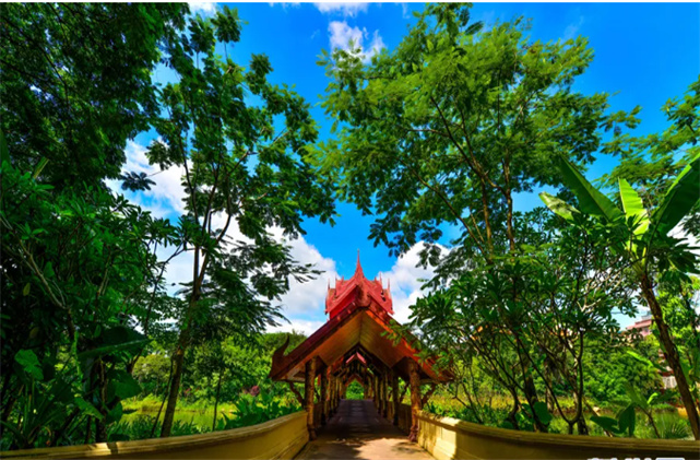 傣族園內(nèi)旖旎的庭院風光濃郁的傣家生活習俗純正的傣家美食典型的傣家竹樓造型傳統(tǒng)的手工藝制作吸引著中外游客。