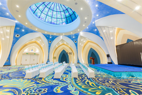 會議室面積:1800平方米 會議室層高:6米 容納人數(shù):課桌式800人 劇院式1500人