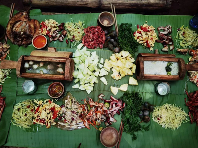 把廚房搬進(jìn)雨林,香茅草烤魚、清炒嫩筍,鮮肉洋瓜湯,蕉葉呈上的美味