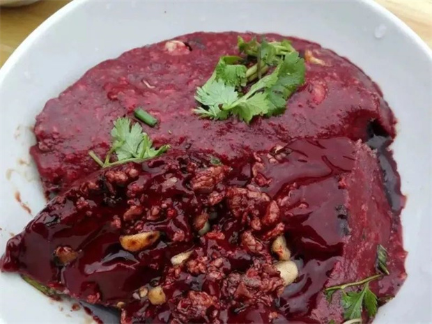 對(duì)于這類吃“鮮”的美食來(lái)說,新鮮是首要要素,老師傅對(duì)調(diào)料的精準(zhǔn)把控也更能激發(fā)這道美食的精髓。在制作中,通常還會(huì)加入炒香的豬瘦肉、花生粒、香菜、糊辣椒面當(dāng)做配料進(jìn)行調(diào)味,隨后再慢慢加入適量水靜置一段時(shí)間,待血旺成果凍一般嫩滑后才算完成。“白旺”鮮艷的顏色也成為食客品嘗第一口的“攔路虎”,但只要鼓足勇氣一口吃下,“白旺”滑嫩的口感和麻辣濃郁的滋味便會(huì)在你的口腔掀起一陣巨浪,讓你一口接一口吃得停不下來(lái)。