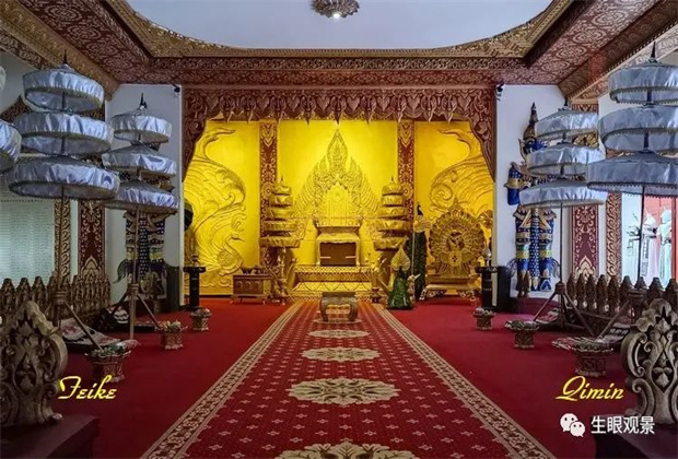 景區(qū)進門廣場的一旁,是傣王行宮,高大的宮廷式建筑、奪目的金黃色宮頂,顯得格外恢宏氣派,金光燦燦,富麗堂皇,很有皇家風范。