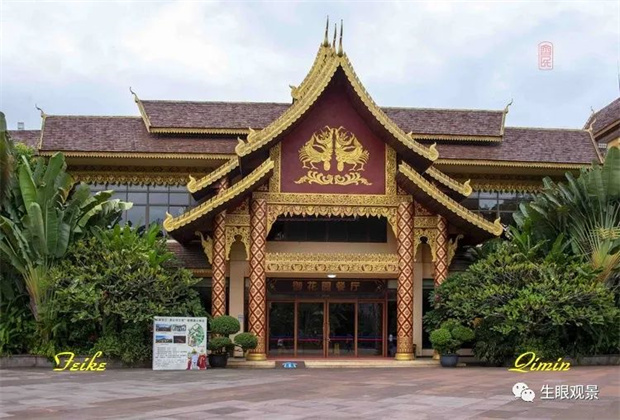 這一組建設得如此“高大上”建筑,原以為也是一處宮殿了,但走近一看,門口的名字竟是“御花園餐廳”,讓我等游客不得不贊嘆這曼聽御花園的卓爾不凡了: